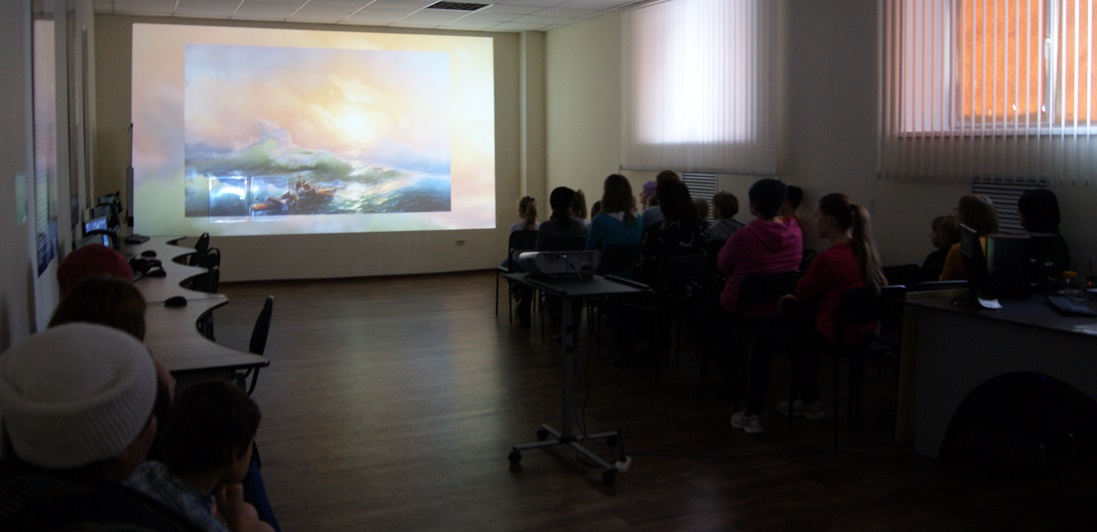 Вторая часть собраний была посвящена маринисту Айвазовскому И. К. Благодаря интерактивной программе из медиатеки с обширным материалом о художнике, фильму «Иван Константинович Айвазовский. К 200-летию со дня рождения», опубликованным лекциям на канале Youtube, которые проходили в Центре мультимедиа Русского музея, было подготовлено и проведено сотрудником виртуального филиала Русского музея О. Ю. Берестень содержательное сообщение о жизни и творчестве Айвазовского.