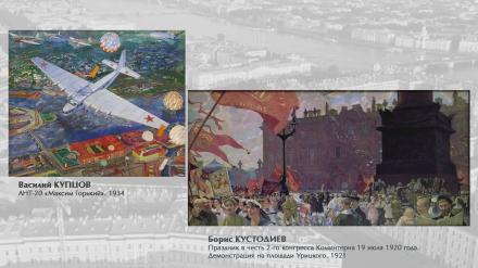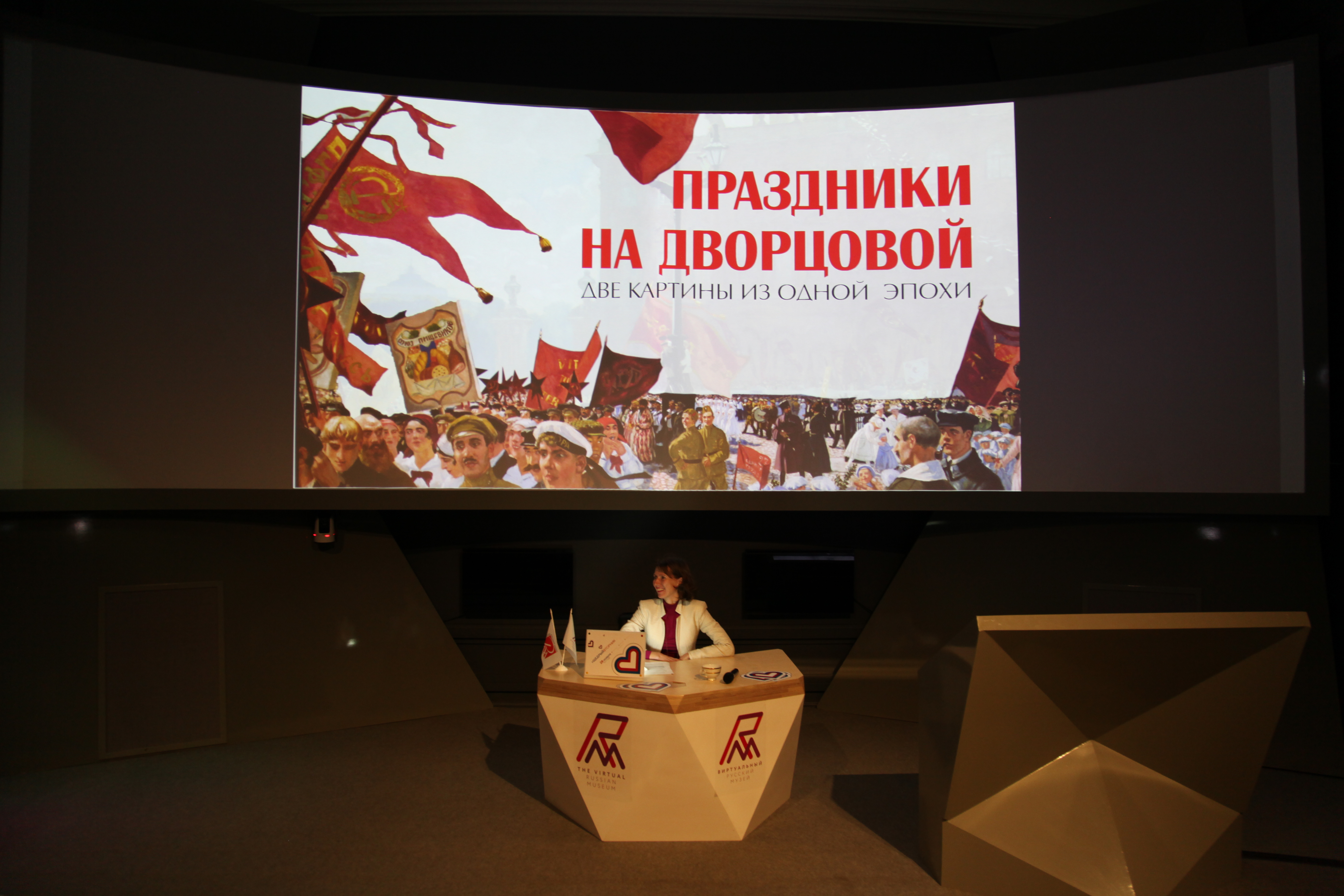 В кинотеатре Центра мультимедиа Русского музея для ветеранов (пенсионеров) войны, труда, вооруженных сил и правоохранительных органов Владимирского округа Санкт-Петербурга состоялся бесплатный показ фильма «Праздники на Дворцовой. Две картины из одной эпохи», созданного на основе двух произведений из коллекции Русского музея – картины Бориса Кустодиева «Праздник в честь 2-го конгресса Коминтерна 19 июля 1920 года. Демонстрация на площади Урицкого» (1921) и работы Василия Купцова «АНТ-20 «Максим Горький» (1934). Перед просмотром один из авторов фильма ‒ Анна Юрьевна Иваненко, рассказала об истории создания картин, а также о тех материалах, которые были использованы при подготовке фильма.