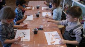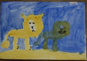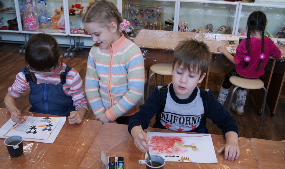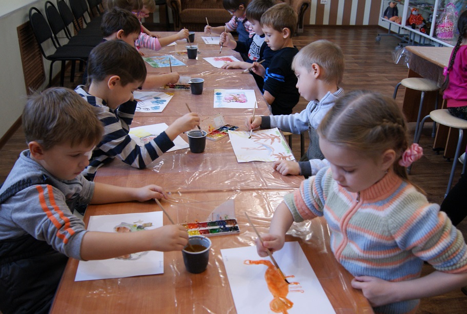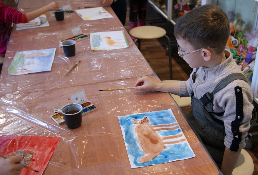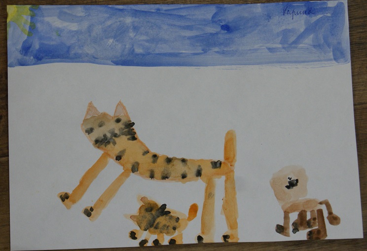 Сегодня они выполняют рисунки на свободную тему, что просто и сложно одновременно. Посмотрев фильм из цикла «В мастерской художника», ребята узнали о том, что художник – это самый свободный человек на свете и может рисовать что захочет. Дошкольникам тоже дали возможность продемонстрировать рисунком богатство их фантазии и внутреннего мира. Каждый был волен рисовать любые сюжеты по своему усмотрению. Мама и папа пьют чай на даче, львы, кошачье семейство,  грустная коричневая собака, обиженная кошка с розовым носом, домик в лесу, мышки, укравшие сыр из холодильника, лиса, кот на фоне красного ковра – воображение маленьких творческих личностей неисчерпаемо!