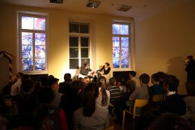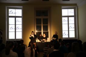 А вблизи одного из самых загадочных и таинственных мест Санкт-Петербурга – Михайловского замка духи мистического Петербурга разыграли перед юными зрителями спектакль о жизни Акакия Акакиевича и его мечте. Город, на фоне которого разворачивается действие повести и спектакля, предстал самостоятельным героем со своим особым характером.