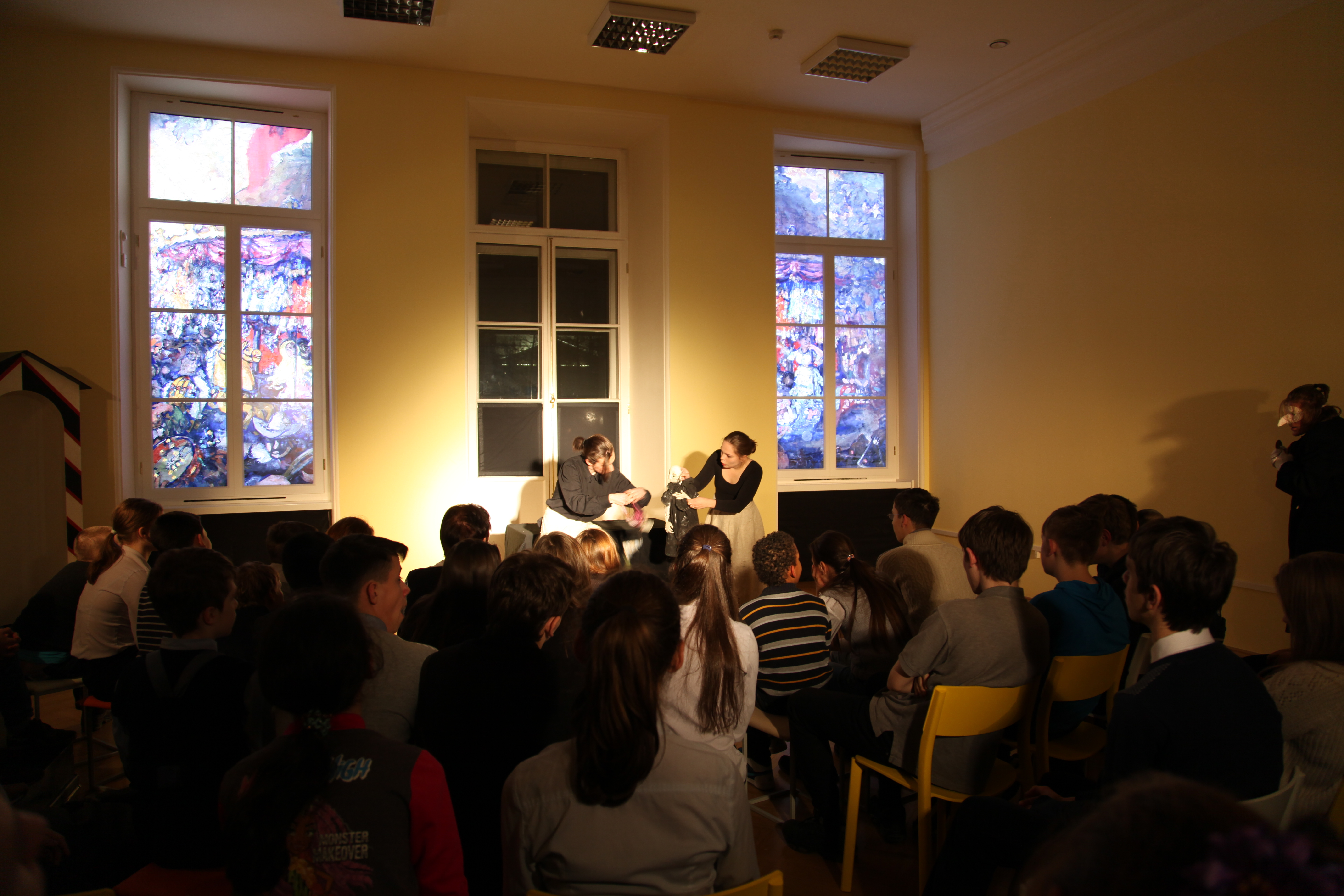 В Театральном зале Центра мультимедиа Русского музея для детей школы-интерната № 22 Невского района и школы-интерната № 37 Фрунзенского района Санкт-Петербурга прошел уникальный кукольный спектакль-фантазия с элементами музейного мультимедиа по повести Н.В. Гоголя «Шинель».