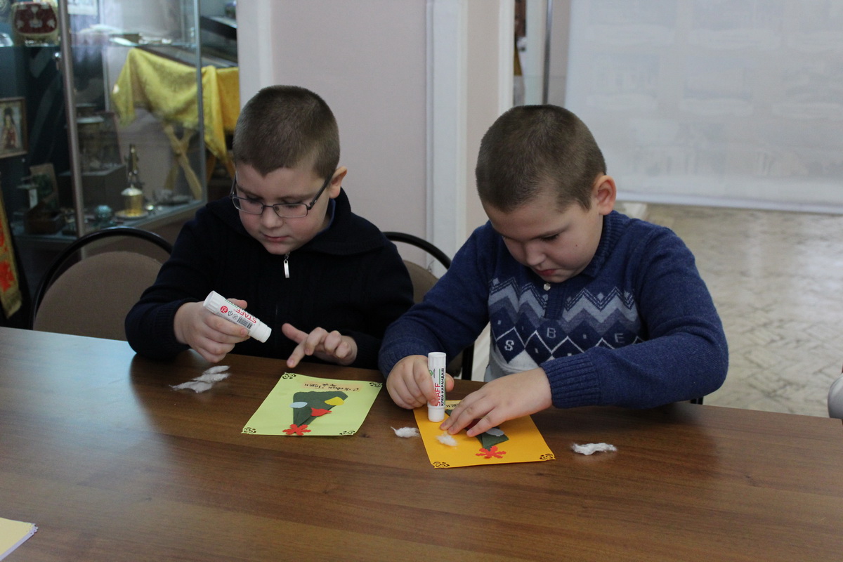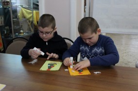 В завершении мероприятия для ребят был устроен мастер-класс по изготовлению новогодней открытки. Все с удовольствием складывали елочки, клеили игрушки и сразу придумывали поздравления, которые они потом напишут на открытках.