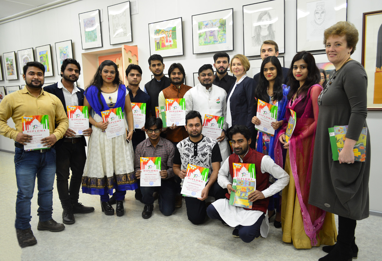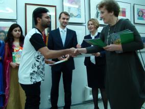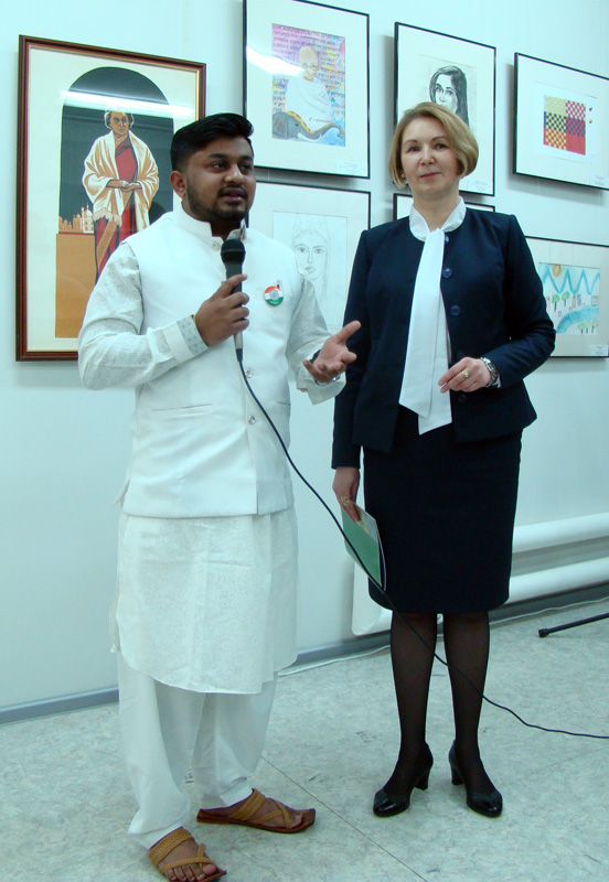 Руководитель отделения Министерства иностранных дел России в городе Чебоксары Александр Погодейкин, Председатель комиссии по науке, образованию и молодежной политике Общественной палаты Чувашской Республики Нина Семедова-Полупан открыли выставку «Мост дружбы: Индия — Чувашия» и наградили победителей международного творческого конкурса.