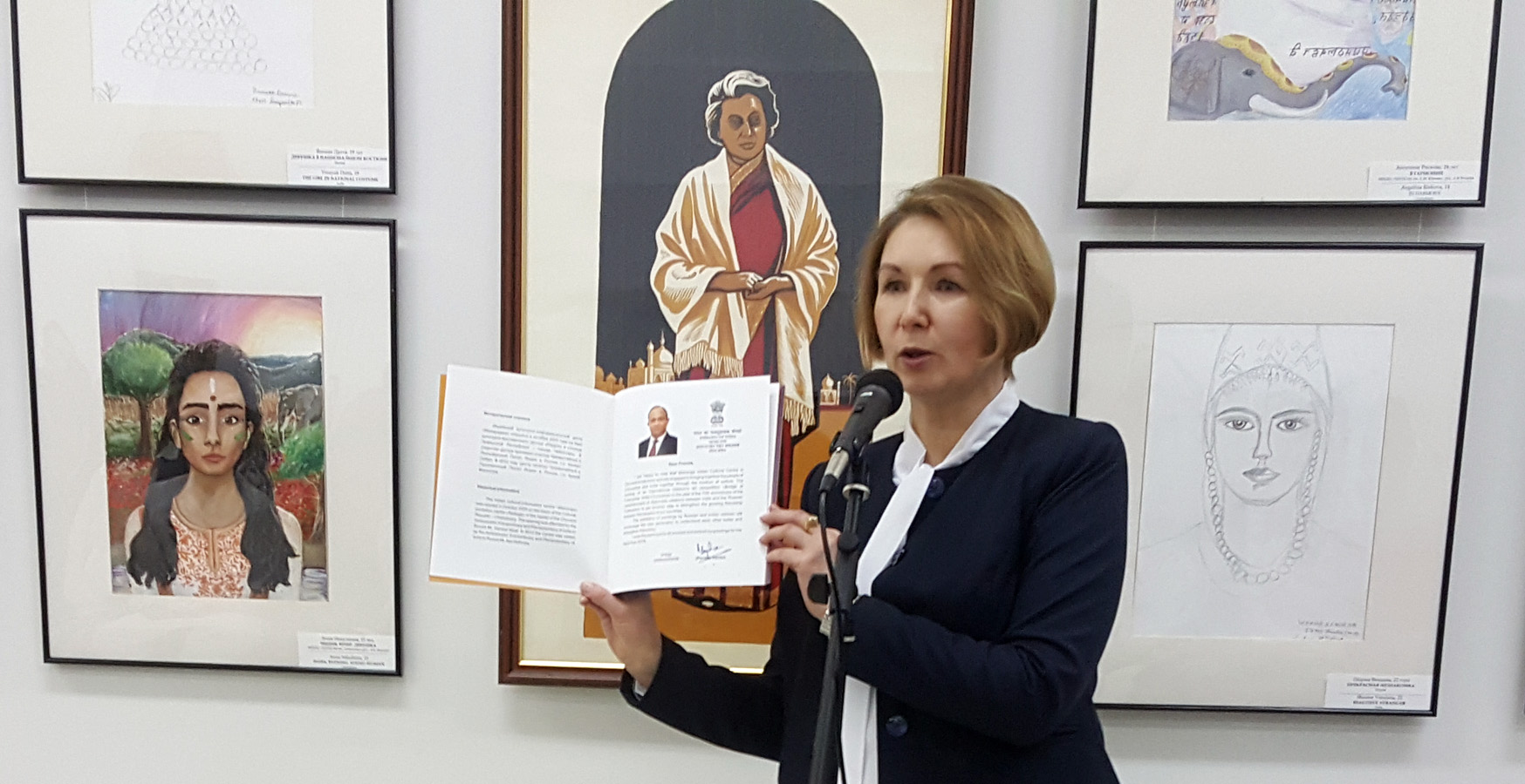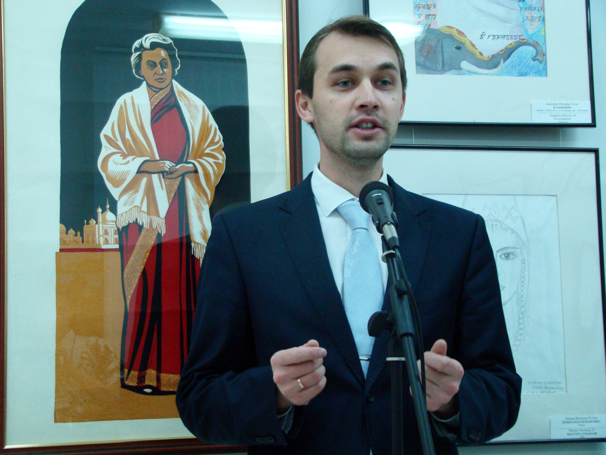 Директор Культурно-выставочного центра «Радуга» Нина Смирнова зачитала приветственные слова Чрезвычайного и Полномочного Посла Индии в Российской Федерации господина Панкаджа Сарана и Главы Чувашской Республики Михаила Игнатьева в адрес участников конкурса.