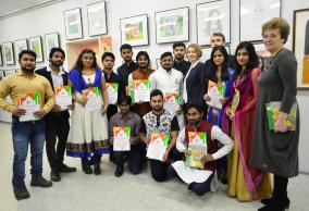 Мост дружбы соединил индийский и чувашский народ не только в области изобразительного искусства, но и в искусстве танца и песни. Индийские студенты из ЧГУ им. И.Н. Ульянова и студенты ЧГПУ им. И.Я. Яковлева обменялись музыкальными приветствиями.