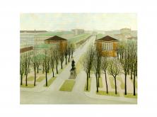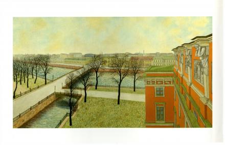 «В Ленинград я «вошел» сквозь черные стволы голых деревьев в конце 1960-х годов. Первый пейзаж написал в 1978 году и только 10 лет спустя приблизился к теме архитектура (культура) и природа (натура). К этому времени я уже очистил город от излишних архитектурных деталей, бытовых подробностей и людей. Город как «идея» Платона сквозь траурную паутину черных ветвей обретал черты «архетипа» Юнга. В то же время в этом противопоставлении или соединении присутствовала другая скрытая оппозиция – мужского, рационального начала (архитектура) и женского, иррационального (вода, деревья).