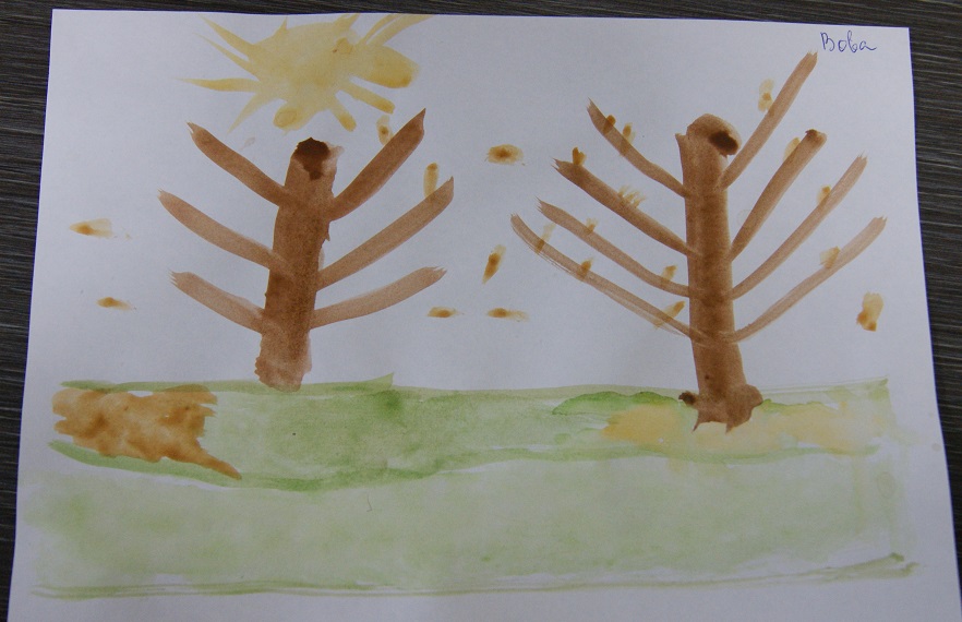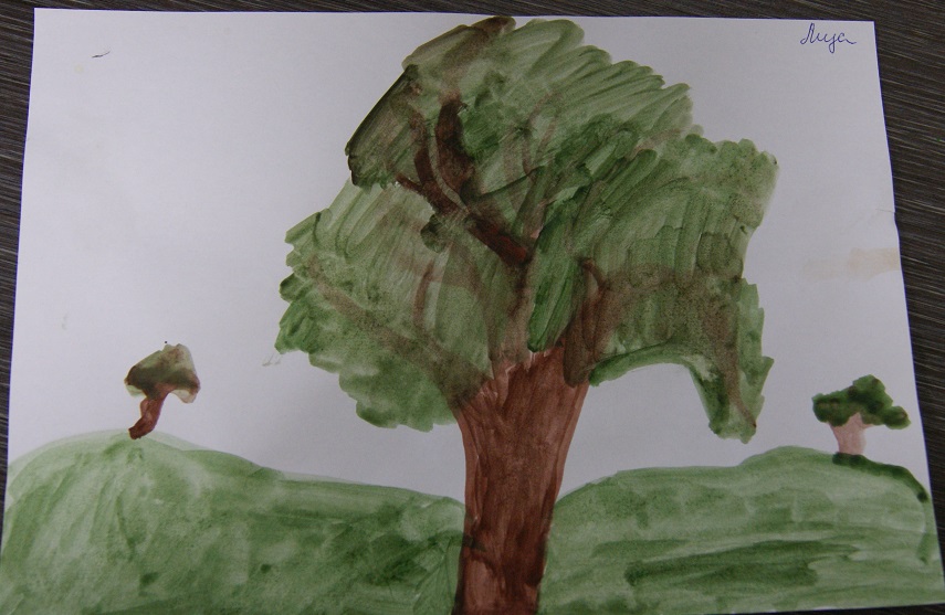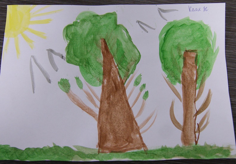 Сегодня их занятие посвящено изображению деревьев. Все ребята уже не раз  рисовали пейзажи, изображали на своих рисунках разное время года. Фильм из цикла «В мастерской художника» помог ребятам понять, что  деревья отличаются друг от друга, у каждого из них есть свой характер. Деревья, как люди, могут быть старыми, с покосившимся  стволом, с потрескавшейся корой, а могут быть молодыми и стройными. И самое главное,  нет двух одинаковых деревьев, все – разные.