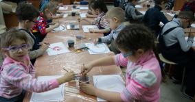 21 декабря воспитанники детского сада № 41 посетили виртуальный филиал Русского музея, располагающийся в Центре культурных инициатив. Сегодня их ждала встреча с народным искусством. Для них было проведено познавательное мероприятие «Жостовская декоративная живопись» из цикла «Добрым людям на загляденье». Ребята узнали историю росписи, увидели, как готовят подносы для росписи – их штампуют на станке или делают ковали. Подносы бывают разнообразных форм и размеров для каждого случая жизни. Основной мотив росписи – цветочный букет, в котором располагаются и крупные садовые и мелкие полевые цветы, а роза – главная героиня этого букета. Чаще всего художники выполняют роспись по чёрному фону, реже по красному, синему или зелёному. У каждого художника со временем вырабатывается свой «почерк», но неизменным остаётся обилие цветов и буйство красок. Рассмотрев те подносы с жостовской росписью, которые хранятся в Русском музее, дети сами стали пробовать расписать бумажные подносы. Пусть получилось не совсем ровно и не очень изящно, но зато ярко и от души!