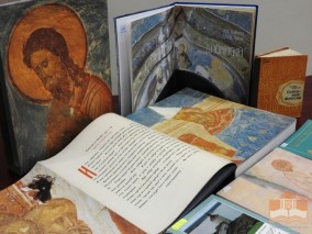 На книжной выставке из фондов Национальной библиотеки Карелии были представлены альбомы фресок Дионисия, книги по древнерусской иконописи, альбомы коллекций Государственного Русского музея.