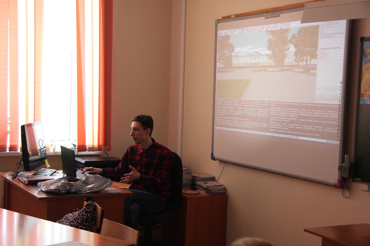 7.02.2018 года сотрудник Южно-Сахалинского ИОЦ «Русский музей: Виртуальный филиал» принял участие в мероприятиях, приуроченных ко Дню российской науки в СОШ №32 (п/р Ново-Александровск, Сахалинская область). Артем Вячеславович рассказал девятиклассникам о Государственном Русском музее и о возможностях ИОЦ «Русский музей: Виртуальный филиал» в Сахалинском областном художественном музее.