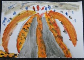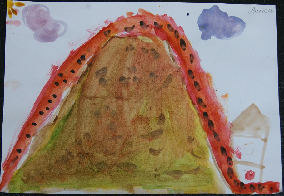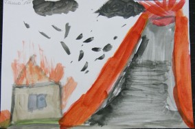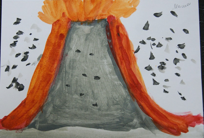 Благодаря фильму медиатеки дети тоже стали сопереживать жителям древних городов, погибших в результате неожиданного и сильного извержения вулкана. Детсадовцы стали рисовать извержения вулканов, раскалённую лаву, сжигающую всё на своём пути, клубы дыма и пепла, окутывающие пространство. Рисунки ребят получились яркими и впечатляющими.