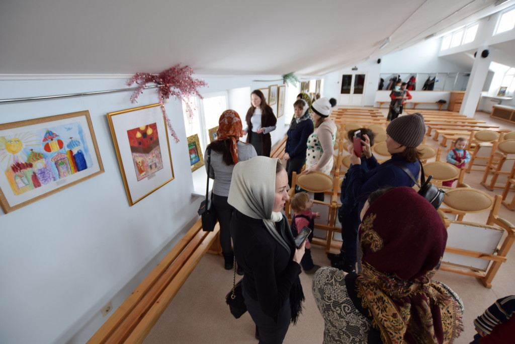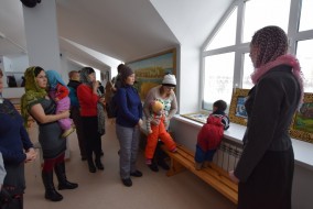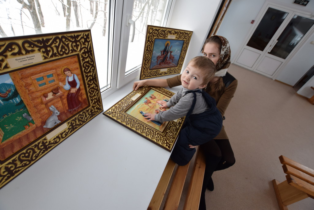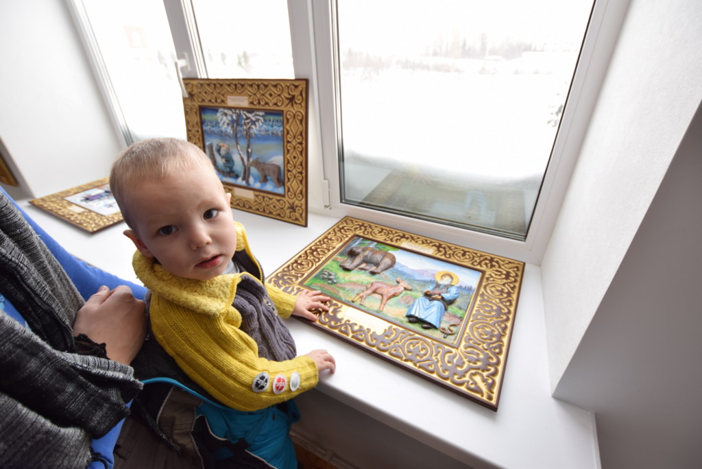 Молодые мамы вместе с малышами с большим интересом познакомились с выставкой «Мы живем в мире» и послушали о гармонии жизни и дружественных взаимоотношениях православных святых и животных, которые им служили. Дети с удовольствием изучали сюжеты рельефных картин наощупь. Затем в Виртуальном филиале Русского музея, в преддверии праздника Сретения Господня, гостям были показаны икона и фрески, посвящённая этому евангельскому событию.