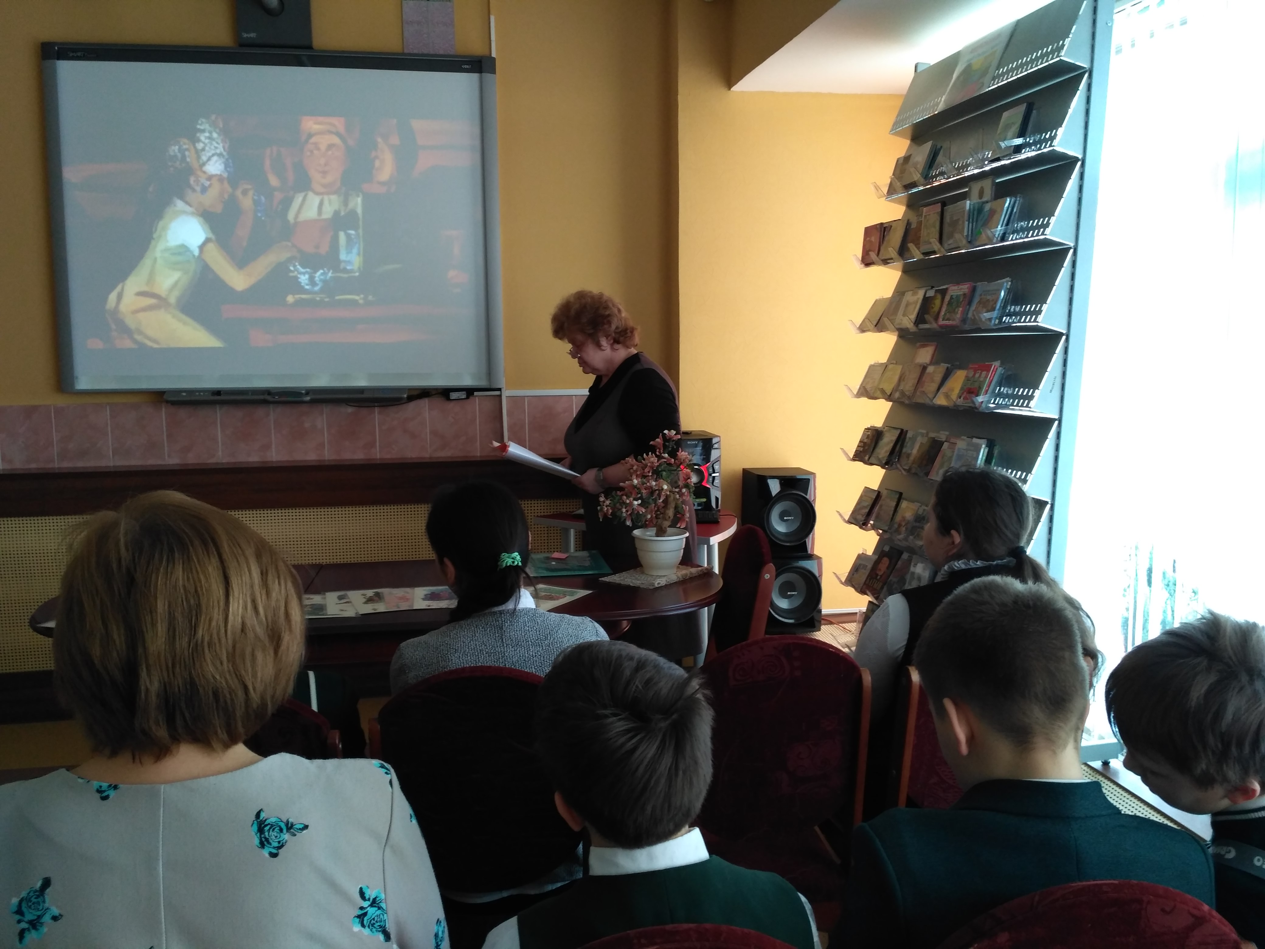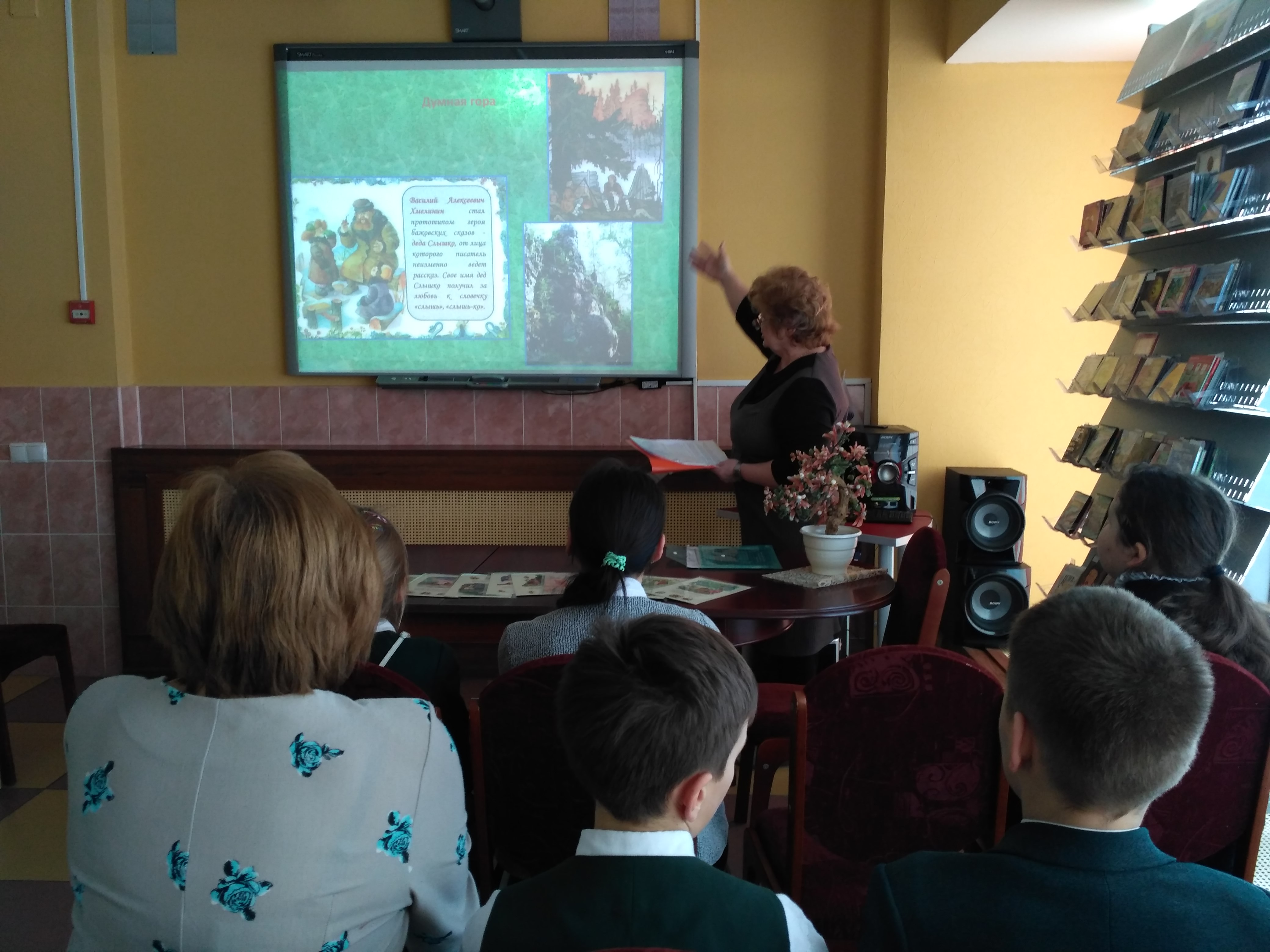 6 марта 2018 года библиотекарь зала искусства Зинаида Николаевна Тимофеева провела беседу «Уральские сказы» для учеников 4 класса школы №106. Мероприятие было посвящено жизни и творчеству известного писателя, фольклориста, публициста Павла Петровича Бажова. Кроме биографии писателя, на слайдах электронной презентации были представлены работы художников-иллюстраторов первых изданий сказов Бажова. А также показаны отрывки из диафильма «Малахитовая шкатулка», в котором прозвучал уральский диалект. Встреча завершилась просмотром мультфильма «Огневушка-поскакушка» и обзором книжно-иллюстративной выставки.