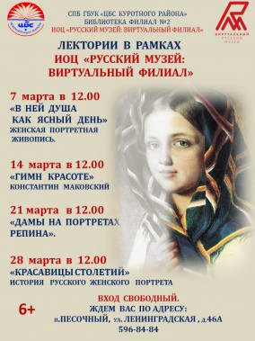21 марта 2018 года в 12.00 в ИОЦ "Русский музей: виртуальный филиал" в библиотеке поселка Песочный состоялась лекция "Дамы на портретах И.Е. Репина".