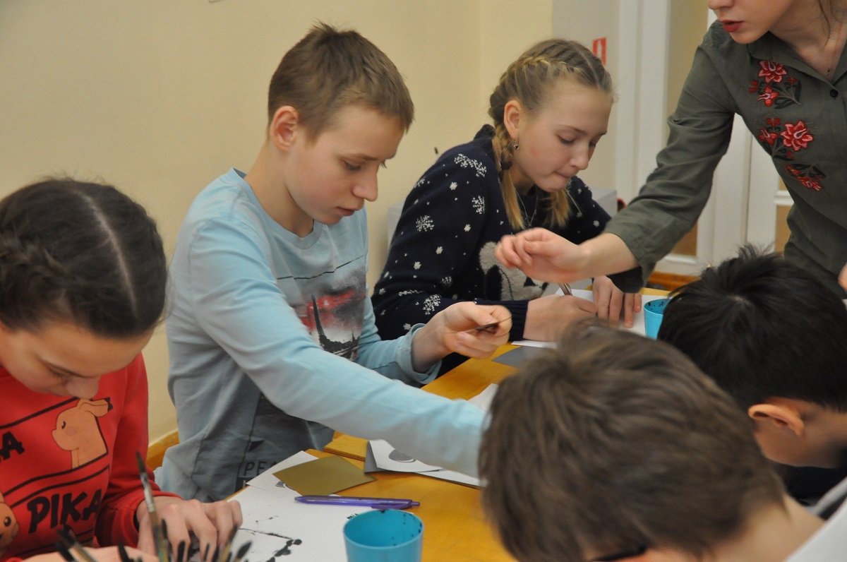 В завершении участники мероприятия попробовали себя в роли художников: познакомившись с техникой картографии, они выполнили оттиски с изображением самого узнаваемого атрибута этого вида спорта - боксёрских перчаток. Самостоятельно сделанная работа стала презентом, который ребята взяли с собой на память.