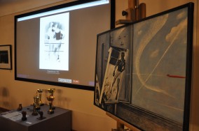 Сделав на память общую фотографию и пообщавшись со спортсменом, ребята переключились на другое восприятие – сотрудники галереи Александра Соболева и Евгения Андони представили им живописные и графические произведения из собрания Государственного Русского музея. Если произведения из Русского музея можно было увидеть только на экране, то одна из работ, посвященная боксу, была показана в оригинале. Это живописное полотно Ю.Г. Григорьева «Дейнеке посвящается», которое подняли из запасников галереи для проведения мероприятия. Кроме того, разговор шел и об искусстве фотографии: на листах фотосерии «Битвы и мужа пою» Елены Захцер представлены образы боксеров до и после поединков, а также сами бои.