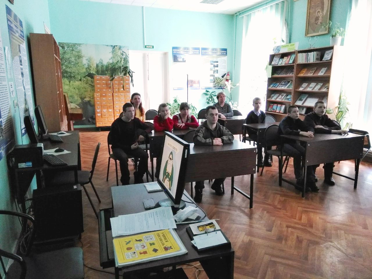 29 марта в Пикалевскую библиотеку приехали гости - воспитанники Ефимовской школы-интерната. Ребята с большим удовольствием и вниманием рассматривали выставки на абонементе "Шерстяная живопись" и "Богини муз и красоты". В выставочном зале окунулись в атмосферу старинной избы: узнали из чего шили одежду, как пряли лен и шерсть, какие наряды носили наши девушки, какие шили одеяла, как вышивали полотенца и какие куклы были игровыми, а какие оберегали дом. Научились делать куклу-пеленашку. И в заключении знакомства с библиотекой в читальном зале побывали на виртуальной экскурсии в Русском музее, посмотрели мультфильм "Ну, погоди" и поиграли в игру "Светлячки".