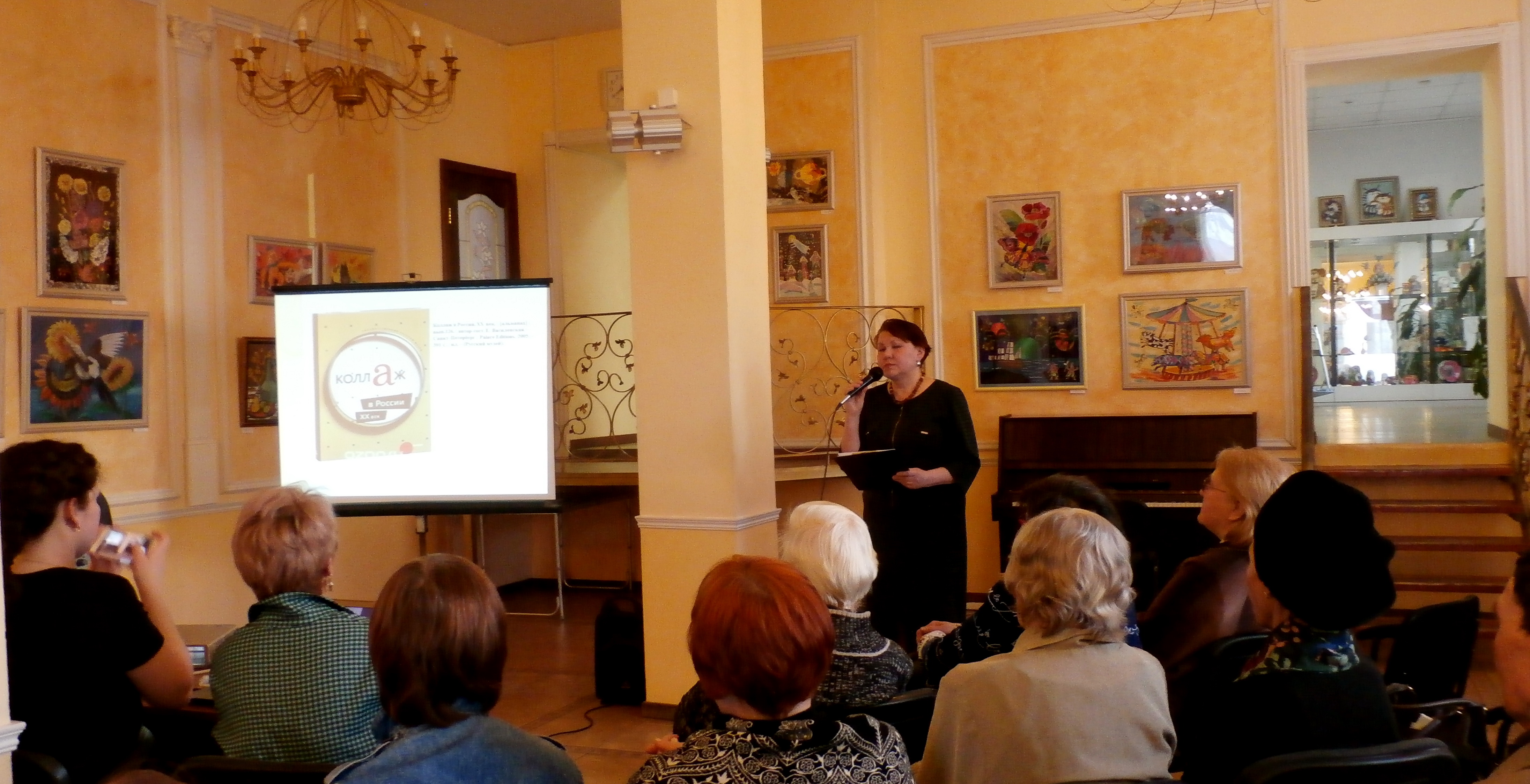 Завершала презентацию заведующая отделом искусств Ирина Липатникова. Она представила альбом «Коллаж в России. XX век», очень заинтересовавшая тех, кто увлекается прикладным творчеством, и альманах «Дмитрий Левицкий «Смолянки» и новые открытия» с рассказом о реставрационных работах специалистов Русского музея, благодаря которым «Смолянкам» была подарена вторая жизнь.