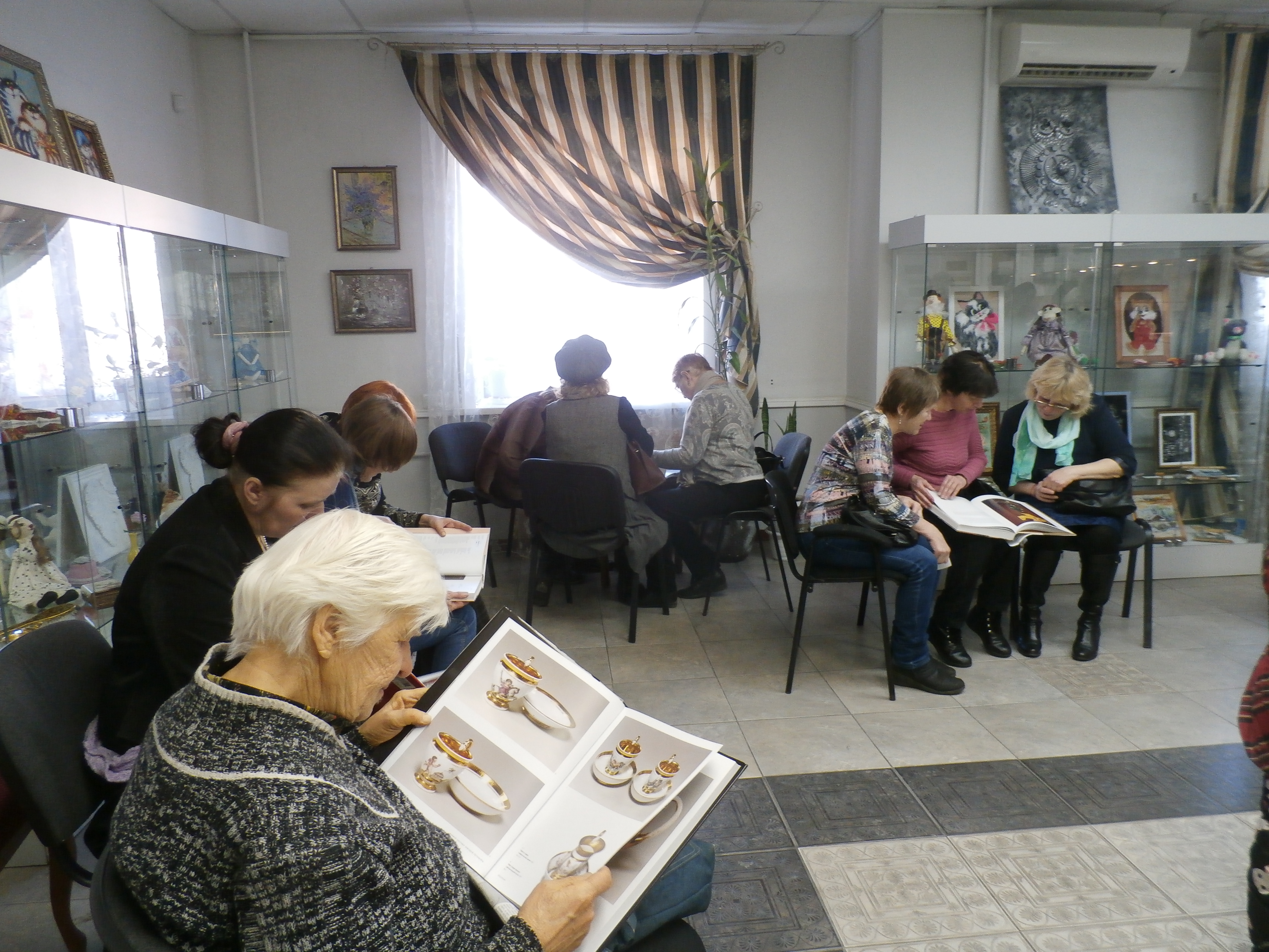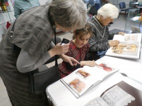 Далее Ирина Липатникова пригласила присутствующих к витринам выставки. В день открытия присутствующие могли подойти и взять в руки эти роскошные издания. Сотрудниками центра были расставлены столы и стулья.