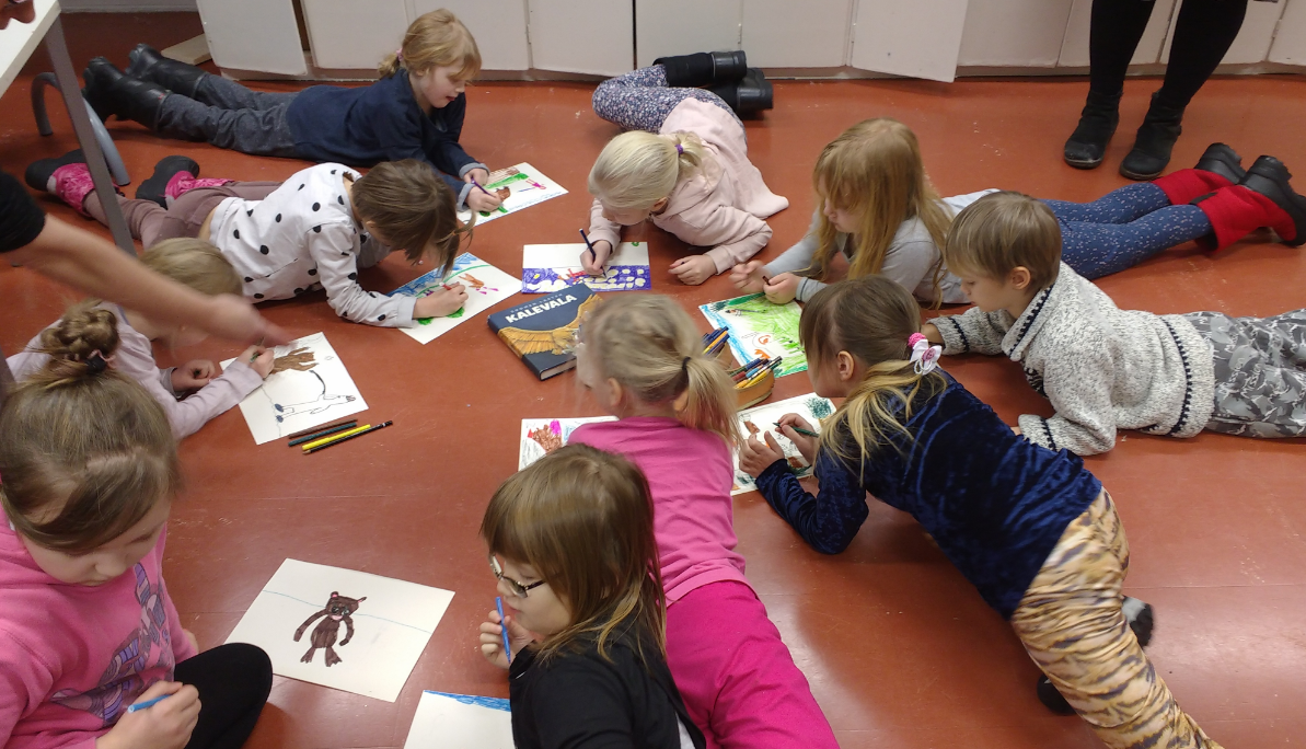 На последующих мастер-классах школьники создавали собственные интерпретации сюжетов и образов главных героев эпоса под руководством профессиональных художников Петрозаводска (Маргариты Юфа, Софьи Теремовской) и города Эно (Туйи Хирвонен-Пухакка).