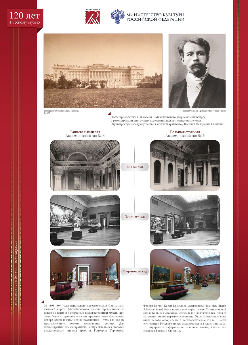 В дни празднования 120-летия со дня открытия Русского музея, сотрудниками виртуального филиала в Калуге подготовлена лекция, отображающая более чем вековую историю существования Государственного Русского музея. В ходе лекции будет рассказано о комплексе Русского музея – дворцах, замках, садах, входящих в его состав, о коллекции и коллекционерах, принявших непосредственное участие в формировании художественного собрания сокровищницы русского изобразительного искусства, о периодах в жизни музея. Также будет приоткрыта тайная завеса о планах Русского музея на будущее.