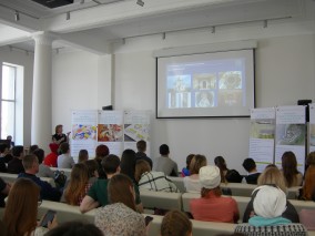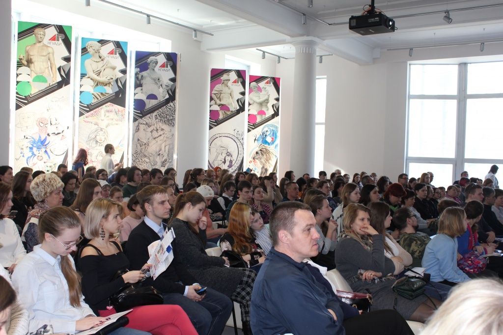 Студенты НГУАДИ с удовольствием рассказывали о своем вузе, проводили экскурсии, показывали выставки студенческих работ и легендарную лестницу, которая одновременно служит творческой мастерской.