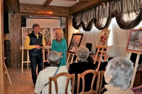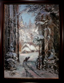 На выставке представлены работы, на которых автор картин вводит нас в мир зимней природы. Мы видим лирические пейзажи Ленинградской области. А вот одинокий домик в заснеженной деревне… Это дом её прадеда в Тверской области, дому - 150 лет. Его сейчас восстанавливает Елена Рыжова.