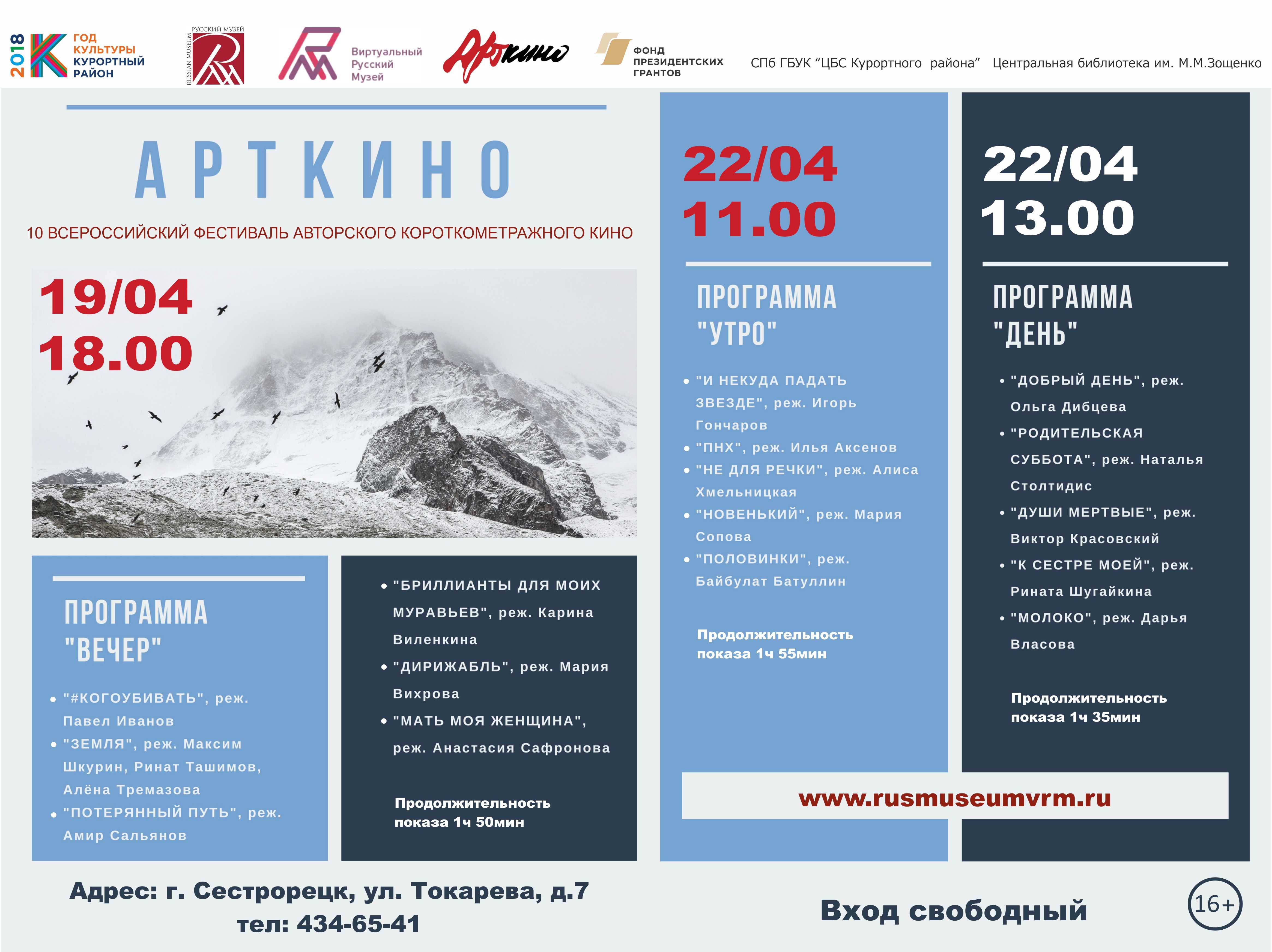 19 и 22 апреля в Центральной библиотеке имени М. М. Зощенко прошел показ лучших работ Х Всероссийского фестиваля авторских короткометражных фильмов «Арткино».