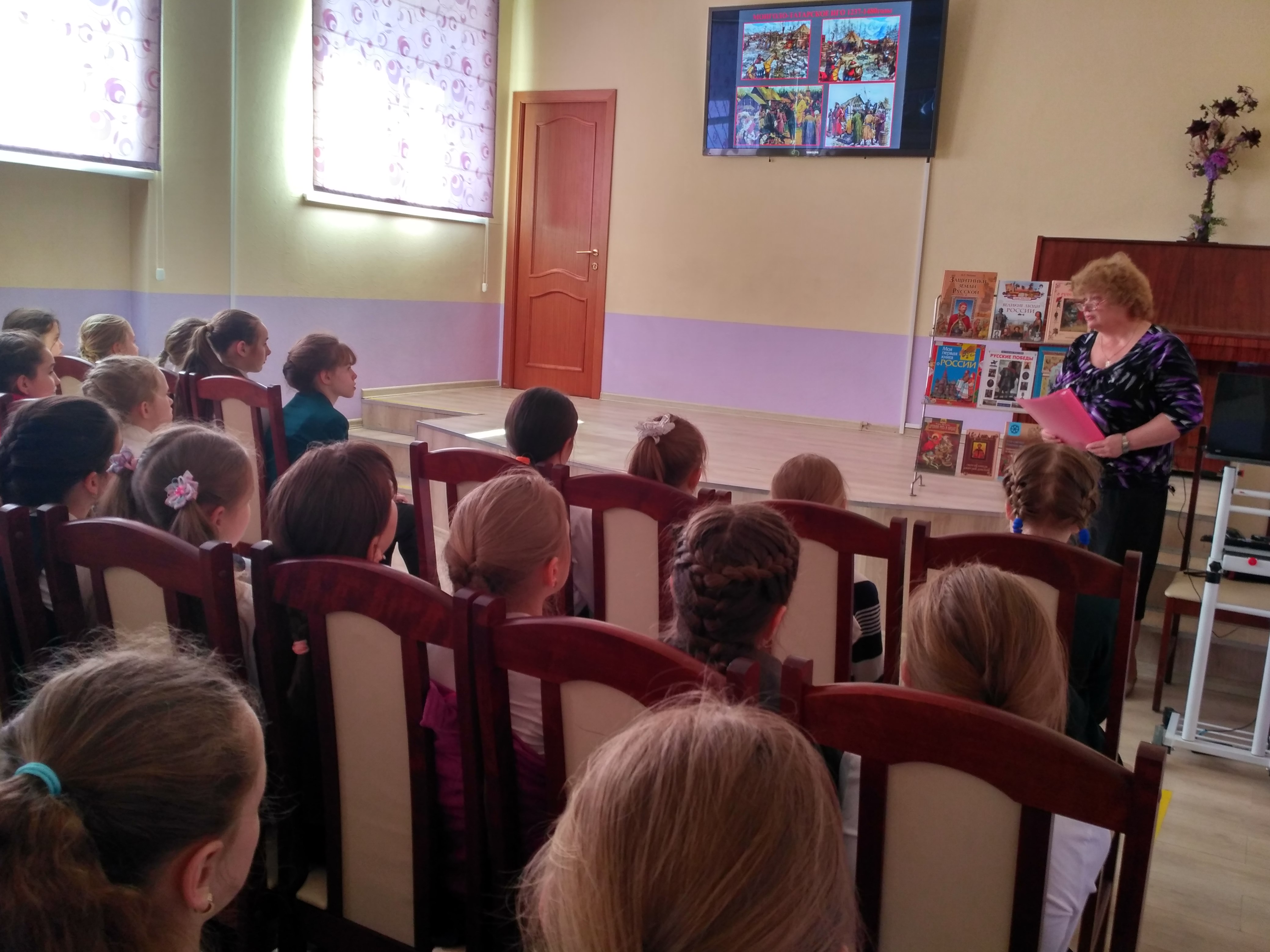 19 апреля 2018 года библиотекарем зала искусства Зинаидой Николаевной Тимофеевой было проведено занятие для учениц 4 класса 106 школы по истории нашего края, посвященное исторической личности, князю Дмитрию Донскому. Ребята познакомились с биографией князя и его жены княгини Евдокии Дмитриевны. Посмотрели видеофильмы о битве на Куликовом поле и о празднике реконструкции в музейном комплексе «Куликово поле». В центре внимания детей были картины известных русских художников: М. Авилова, И. Глазунова, А. Бубнова, В. Моторина, П. Рыженко, Н. Гила, С. Присекина, посвященные Куликовской битве. Ребята узнали историю Московского Кремля, ознакомились с книгами нашей библиотеки, посвященными этой теме.