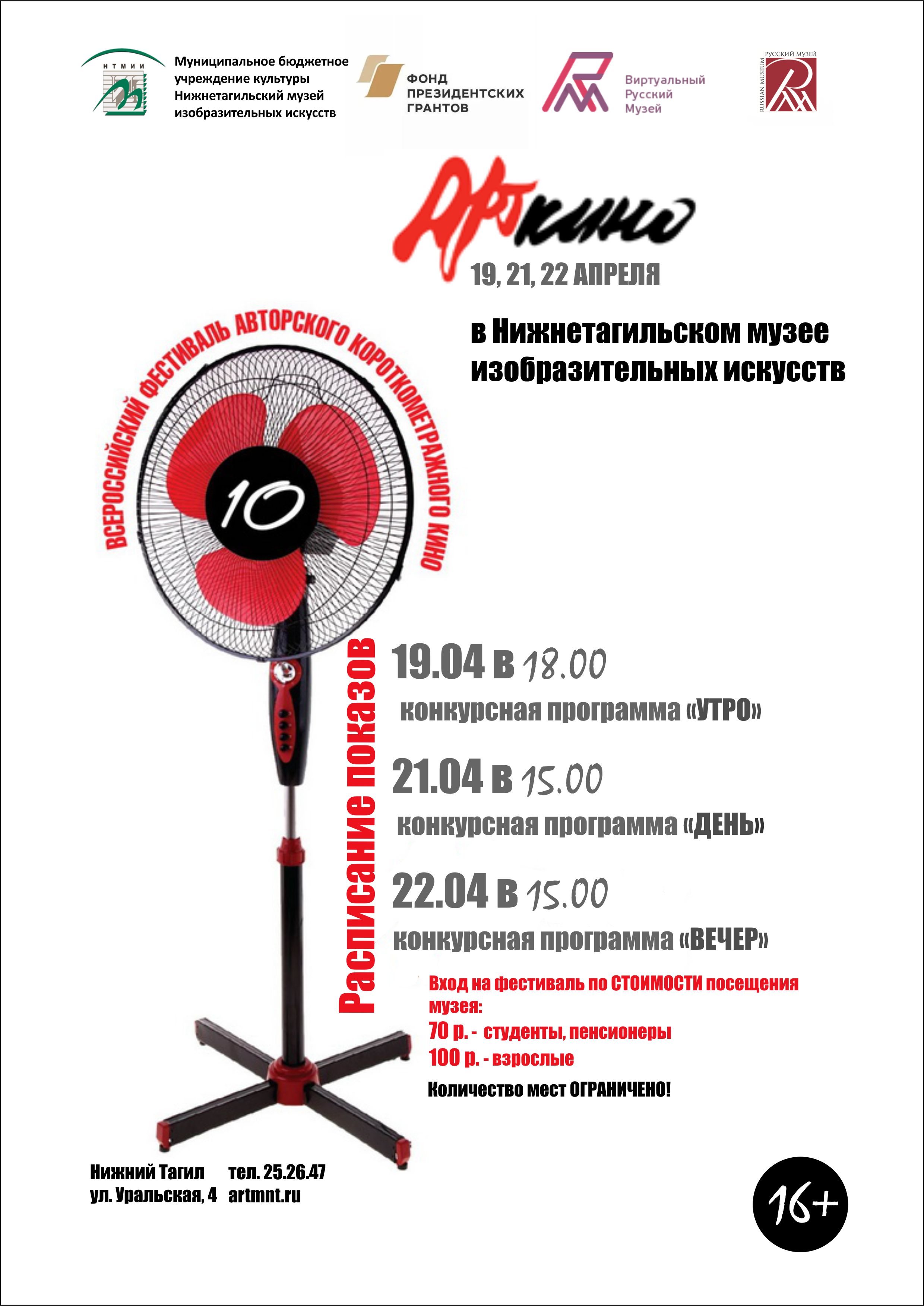 19, 21 и 22 апреля в Нижнетагильском музее искусств (Уральская 4) пройдет 10-й Всероссийский фестиваль авторских короткометражных фильмов «АРТкино»! Приглашаем посетить конкурсные программы «АРТкино» и определить «Лучший короткометражный фильм года по мнению зрителей»: