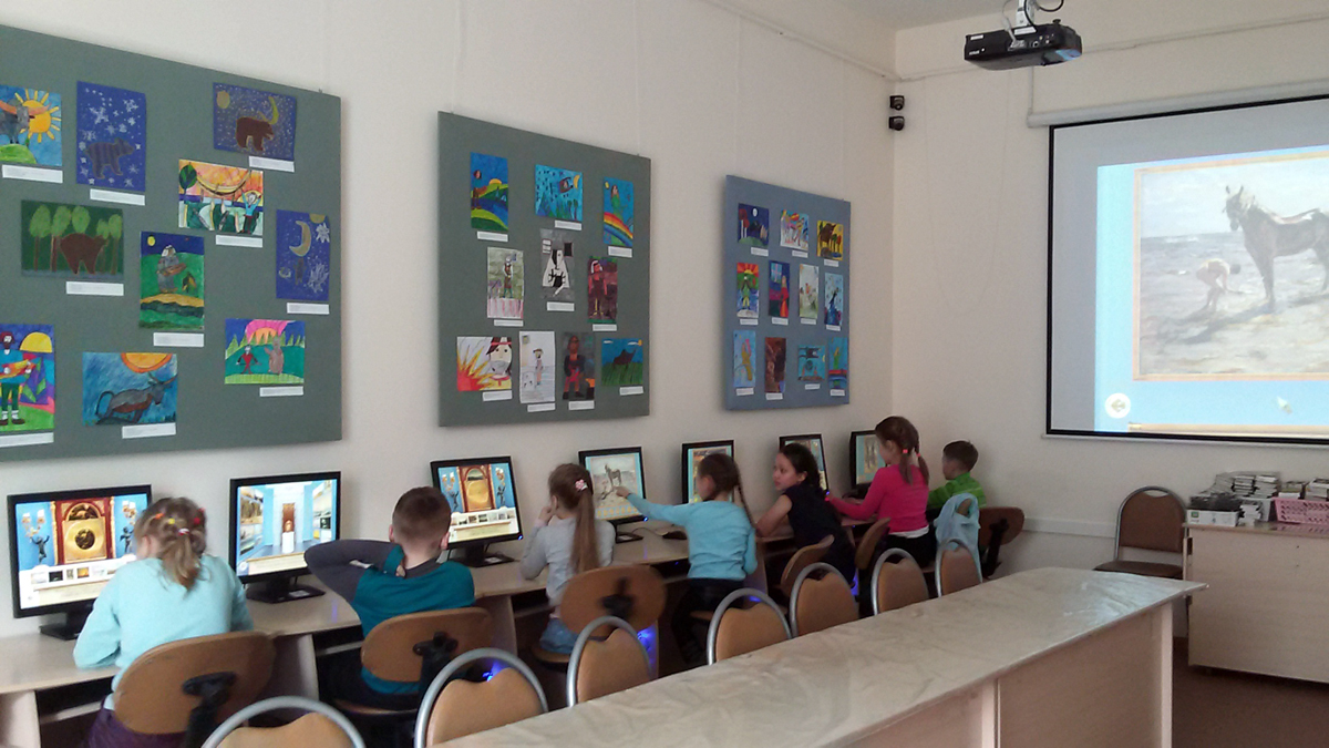 24 апреля в компьютерном классе Ресурсного центра творческого развития детей и подростков МИИ РК прошло занятие студии «Волшебные кисточки», в которую ходят дети дошкольного возраста. Занятие называлось «О цвете и свете в живописи». Проводила занятие Зубарева С.Л., зав.ресурсным центром МИИ РК. Она воспользовалась методическим занятием для сотрудников виртуальных филиалов ГРМ «Разговор о цвете и свете в живописи. Игра «Светлячки», которое проводила Светлана Владимировна Бирюкова 22 марта 2018 года. Многие из участников студии еще не умеют читать, поэтому игра «Светлячки» проходила в режиме коллективной игры с обсуждением. Детям игра очень понравилась и учебный материал в игре воспринимался легко и просто.
