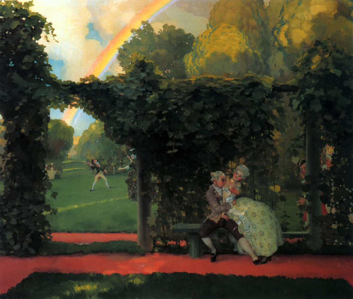 Имя этого художника неразрывно связано с художественным объединением «Мир искусства». Сомов – яркий представитель русского модерна и символизма. Его картины отличаются изысканностью, поэтичностью образов, они многогранны и неоднозначны по содержанию. Сомов стал создателем нового типа портрета, названного ретроспективным: художник писал своих современников в костюмах былых эпох, выступил певцом галантного восемнадцатого века. Современники говорили о Сомове, что в своих произведениях он воплощает тени давно минувшего.