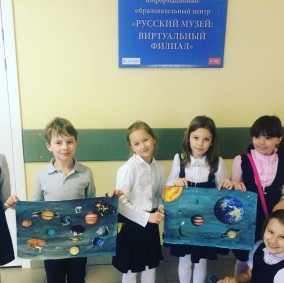 12 апреля, в международный День авиации и космонавтики ученики начальных классов на занятии "Здравствуй,музей!" оказались на виртуальной экскурсии на космодроме, посмотрели запуск ракеты, послушали речь Ю.Гагарина перед взлётом, познакомились с творческими работами космонавтов А.Леонова и М.Серова, народных художников-фантастов, а на мастер-классе создали свои космические пейзажи!