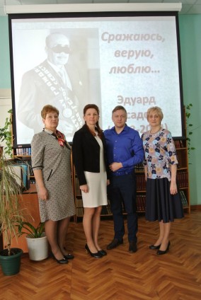 24 апреля в Пикалевской центральной библиотеке на свою традиционную встречу собрались члены клуба "Блокадник"и ветераны города Пикалёво. С приветственным словом к ним обратились начальник структурного подразделения МУК "Дворец Культуры г. Пикалево" Пикалевская центральная библиотека Цветкова Л.А., заместитель председателя Совета ветеранов Шаткова Т. М. Подарком от библиотекарей стал литературно-музыкальный час "Сражаюсь, верую, люблю", посвящённый жизни и творчеству поэта-фронтовика Эдуарда Асадова. Прозвучали музыкальные композиции на проникновенные стихи поэта.