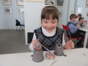 В апреле в ИОЦ «Русский музей: виртуальный филиал» библиотеки - Центр деловой и правовой информации для учащихся школ Автозаводского района проходил квест "Светлая Пасха", который включал в себя различные задания и мастер-класс "Пасхальное яичко".