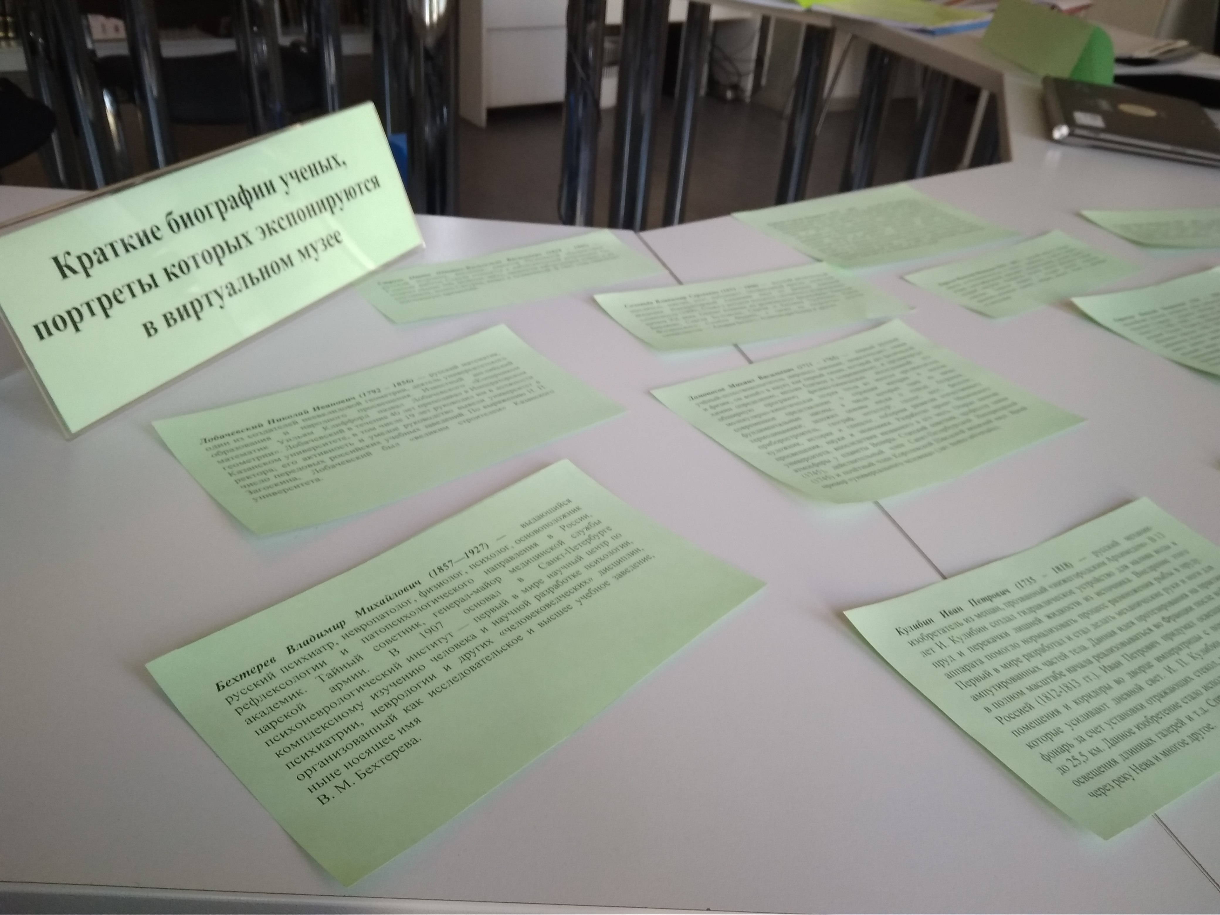 В рамках мероприятий недели науки в гимназии № 56 в ИОЦ «Русский музей: виртуальный филиал» на базе медиатеки, открыта «Виртуальная портретная галерея великих русских ученых». Основу экспозиции составили живописные произведения, экспонируемые в Русском музее.