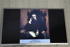 На экспозиции, в свободном формате, посетители могут ознакомиться с краткой биографией и основными открытиями великих ученых.