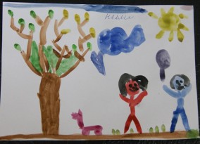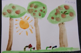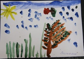 Благодаря фильму медиатеки виртуального филиала Русского музея из раздела «В мастерской художника» ребята узнали как передать цветом своё настроение, как цветовыми пятнами представить любое время года. После просмотра фильма дошкольники сами стали пробовать изображать своё настроение. Они больше тяготели к конкретным изображениям, выражая настроение именно цветом – ярко–жёлтое солнце, изумрудная зелень деревьев, синие облака, красные яблоки на яблонях, голубой дождь и … цветные человечки с собакой! Смотря на работы юных авторов можно сказать, что настроение у них сегодня замечательное.