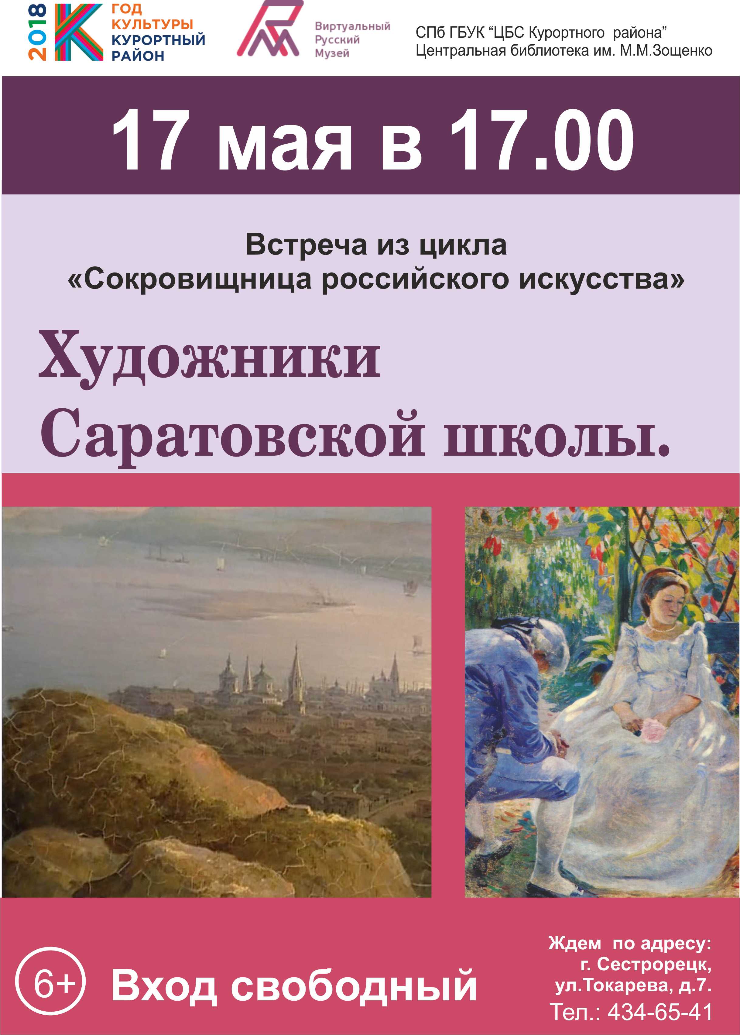 17 мая 2018 года в 17.00 состоялась очередная встреча из цикла "Сокровищница российского искусства", посвященная Саратовской художественной школе.
