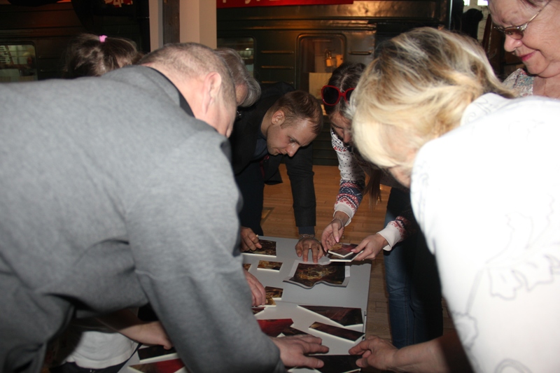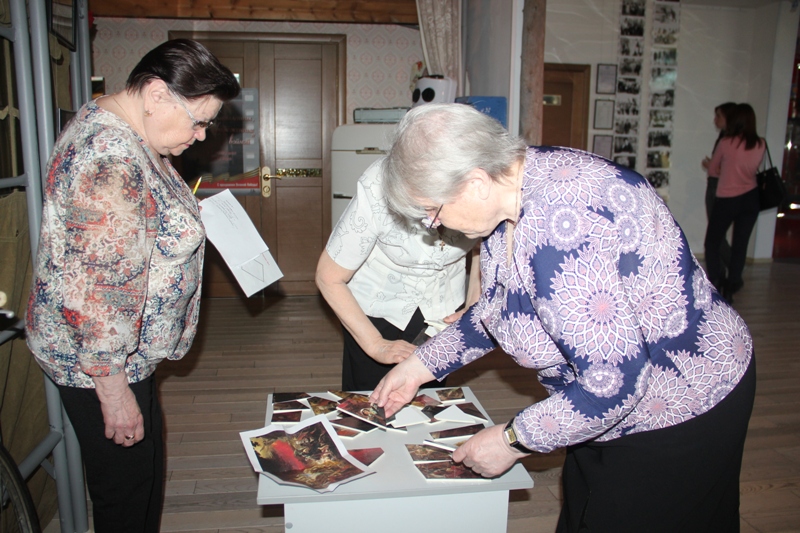 Встреча началась с квест-игры, которая помогла узнать фамилию художника и имена его близких. Участники игры проявили свои интеллектуальные способности и с интересом выполнили задания квеста. Одно из заданий игры – собрать пазлы, объединило обе команды. В итоге участники совместно собрали картину Карла Брюллова «Последний день Помпеи». Взрослые старожилы со знанием дела помогли молодым участникам разобраться с заданиями игры.