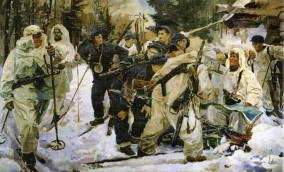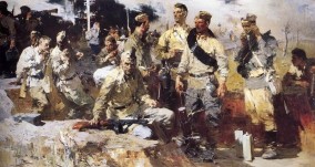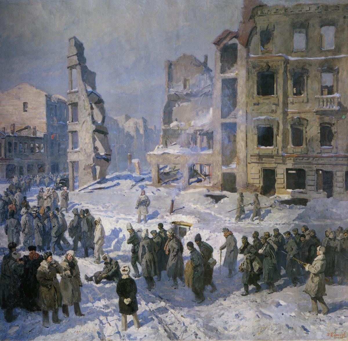 Художники принимали самое активное участие в борьбе с врагом. Во время боев и яростных сражений появилось новое поколение творцов, которое мы сегодня называем художники-фронтовики. Принадлежность эта определяется не только в выборе тем, как правило, батального жанра, она по-новому определила смысл и назначение профессии художника. Многие из них, спустя годы, в своем творчестве уже больше никогда не обращались к теме войны - приоритетным для них станет изображение мирного времени и людей, которые поднимали страну из руин.