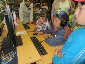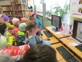 В библиотеке пос. Солнечный состоялось первое мероприятие в рамках проекта "Русский музей: виртуальный филиал". Первыми посетителями мультимедийного кинотеатра стали 17 дошкольников, воспитанников Солнечного детского сада. Для них мы показали фильм "Васнецов. Из цикла "Сказки о русских художниках". После просмотра фильма ребята познакомились с информационно-образовательным классом. Разделившись на две команды, маленькие посетители виртуального филиала приняли участие в игровом соревновании на этапе "Богатыри" игры "России воины-сыны." Дети познакомились с вооружением и одеждой древних воинов из картин В.М. Васнецова.