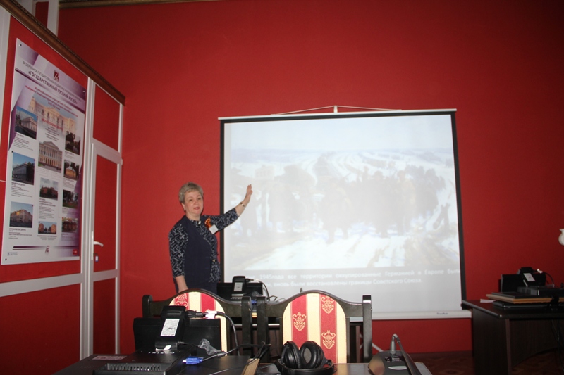 Оцифрованные произведения когалымского музея позволили проследить путь к Победе. Присутствующие смогли убедиться, как нелегок был этот путь. Полотно Б.В. Котик «Портрет Доватора» познакомило с легендарной личностью генерала Доватора и кровопролитными боями за Москву. А картина В.В. Коротаева «Художник» смогла рассказать о повседневном подвиге художников во время войны. Образ защитников Отечества представило полотно А.А. Фурсеева «Мальчишки 43-го».