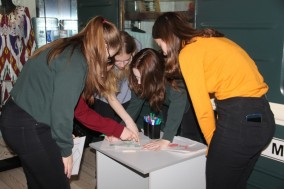 Затем когалымские восьмиклассники активно включились в игру-квест «Портрет», закрепляя полученные знания. Интеллектуальная игра позволила не только проверить ребятам свои способности, но и проявить творчество. С огромной любовью было выполнено задание по созданию плаката, посвященного 120-летнему юбилею Русского музея. Все участники с заданиями справились на отлично.