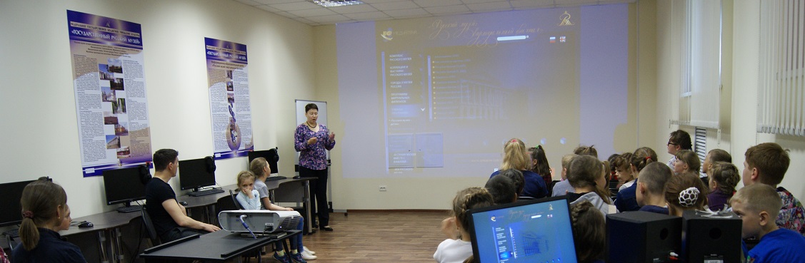 Посещение виртуального филиала Русского музея – один из пунктов программы летних лагерей. Ведь виртуальный филиал – это расширенные возможности для творческого развития, обогащения духовного мира и интеллекта ребёнка. Все группы находят в виртуальном филиале то, что интересует именно их, удовлетворяя потребности в новых эмоциях, творческой самореализации и общении. В процессе знакомства с работами известных художников и скульпторов, посредством ресурсов медиатеки виртуального филиала, происходит развитие творческого и интеллектуального потенциала личности ребёнка. Фильмы о разных видах и жанрах изобразительного искусства из циклов «Русский музей – детям», «В страну музеев вместе с Фафалей» увлекают детей, вызывают их заинтересованность. Удивляет юных посетителей и возможность совершить прогулку по музейному комплексу, благодаря виртуальному туру virtual.rusmuseumvrm.ru. Игровые программы медиатеки позволяют ребятам ощутить радость достижения результата в процессе совместной деятельности.
