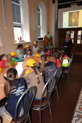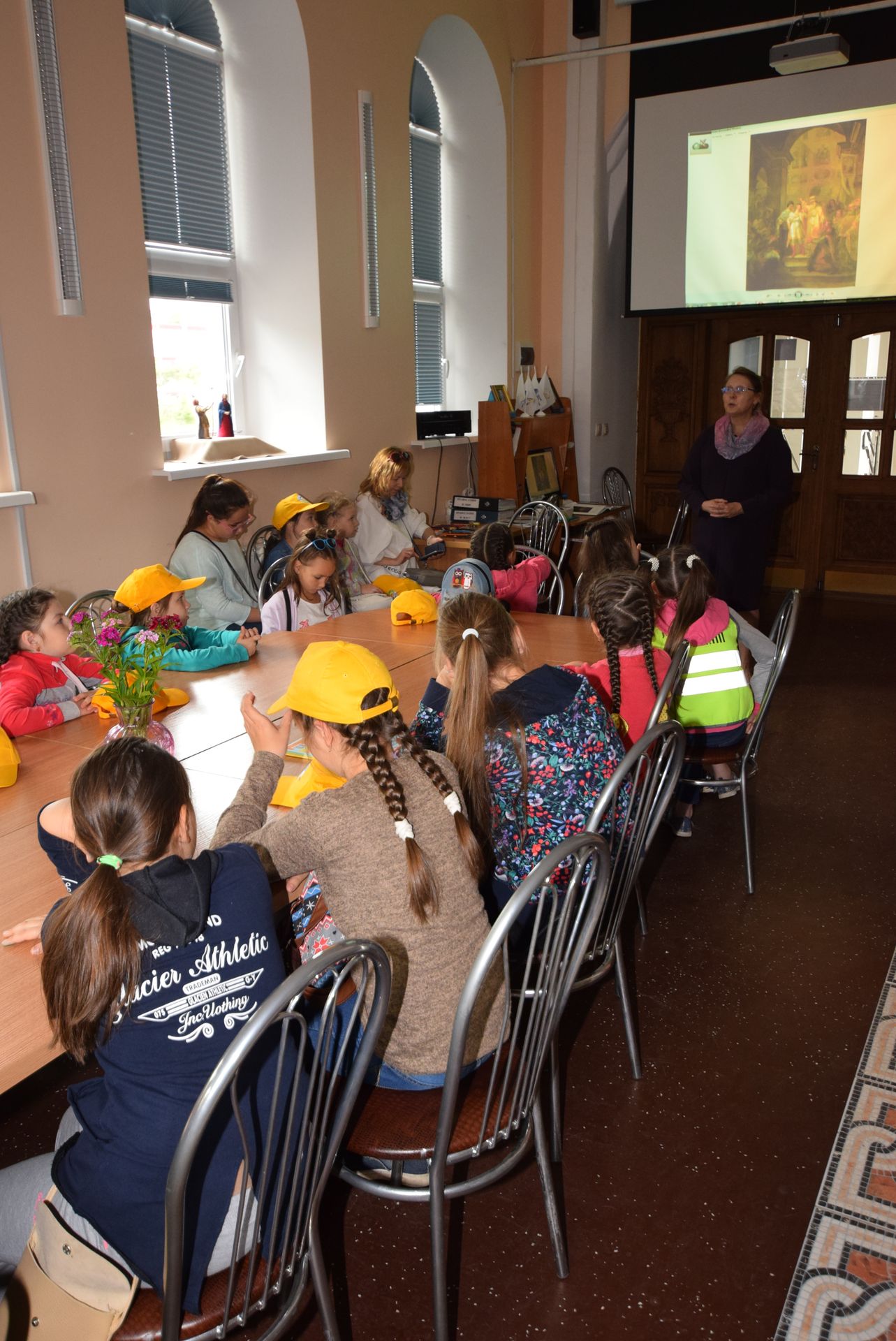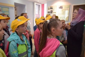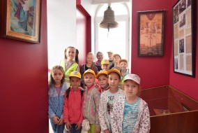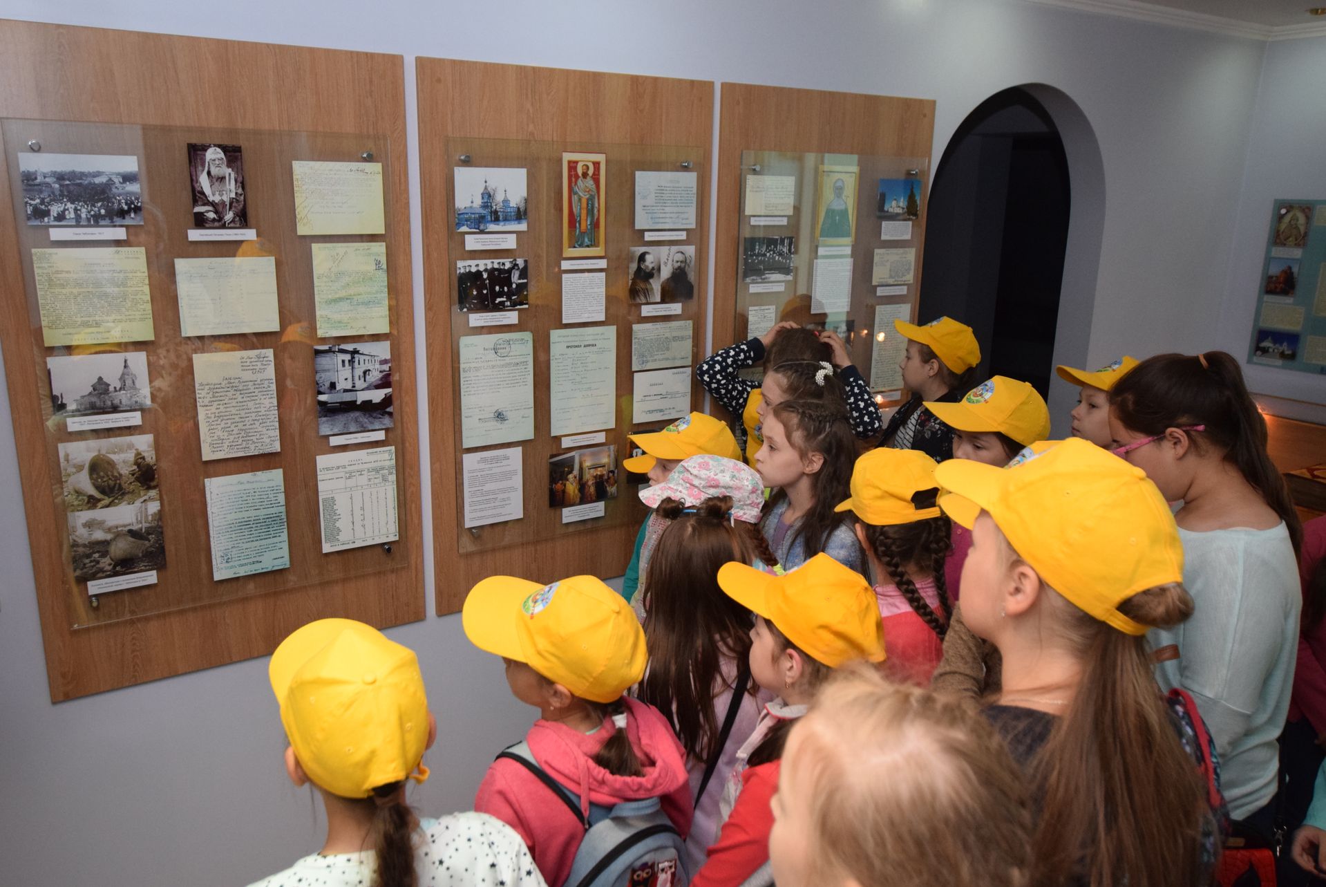 Иконы Святым царственным страстотерпцам представлены и в храме Новомучеников и исповедников Российских. Дети с интересом познакомились с образом святой царской семьи Романовых на стенописи собора, фрески которого изображают лики пострадавших за веру в годы гонений и безбожия. Дополнением к изучению темы репрессий и гонений в СССР стала экскурсия по залам Церковного музея.