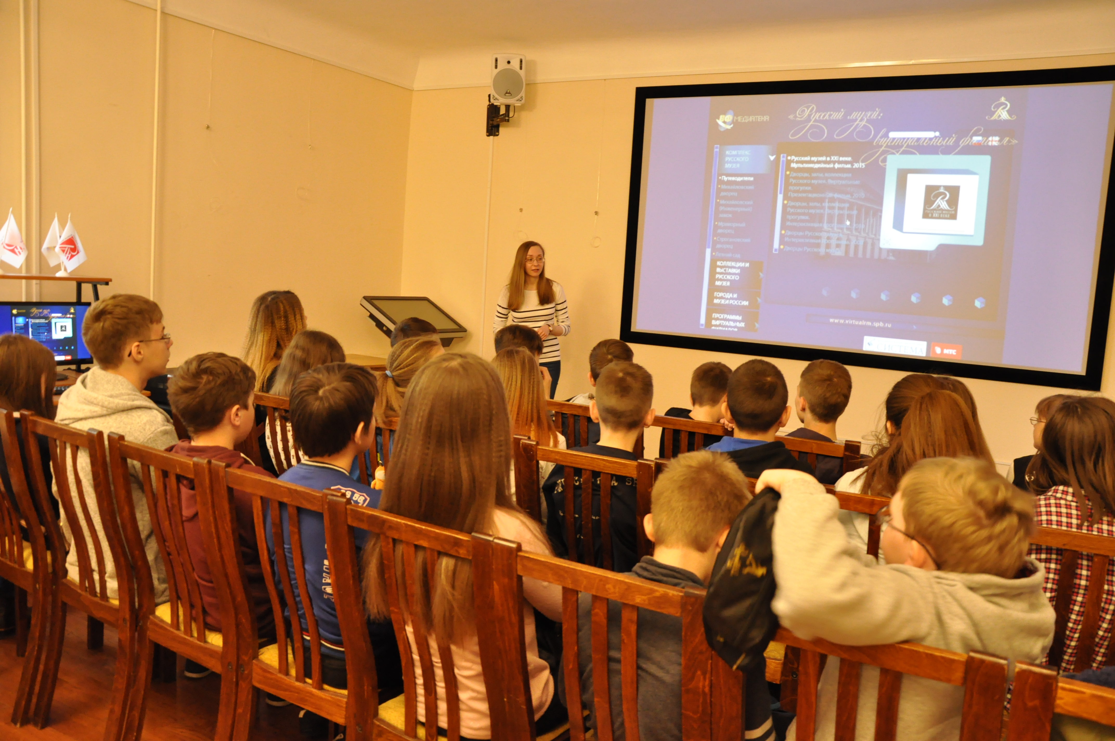 Многие из ребят были в Национальной галерее впервые. Они начали знакомство с миром художественного музея с обзорной экскурсии по постоянной экспозиции Национальной галереи и беседы о роли и значении современного музея. Гостям была представлена медиатека виртуального филиала, а к просмотру предложен фильм "Русский музей в XXI веке".