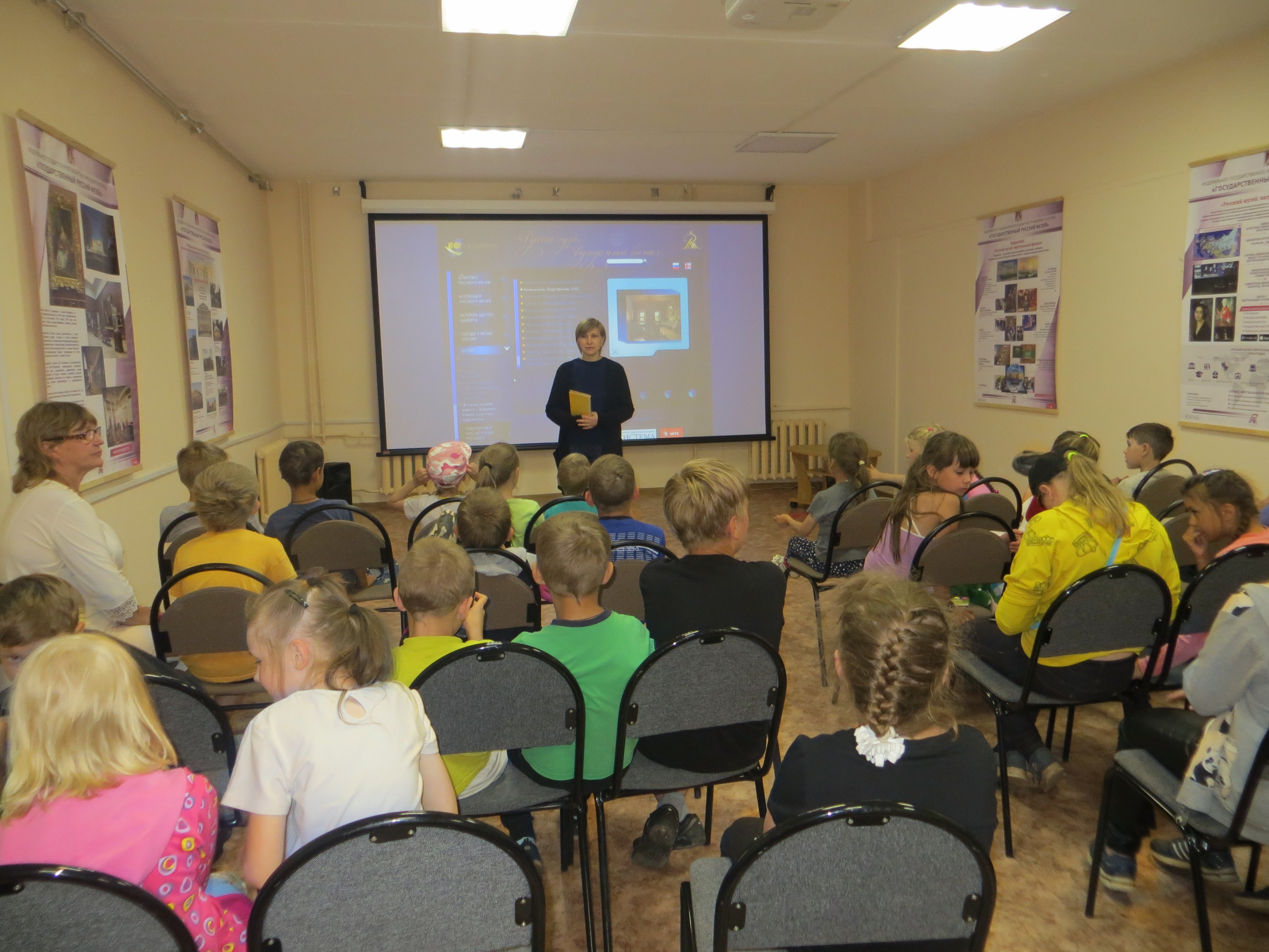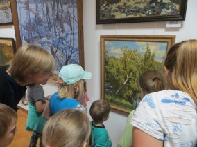 С именем Венецианова связана Солнечная народная картинная галерея, она была открыта в день 200-летия со дня рождения художника. Дети познакомились с фильмом из медиатеки Русского музея "Сказки о русских художниках. Венецианов". Заведующая картинной галереей Сычева Ольга Юрьевна пригласила ребят прогуляться по залам, рассмотреть картины, определить жанры. Дети с удовольствием узнавали портреты, пейзажи, натюрморты.