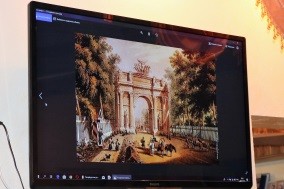 Посетители лекции получили возможность подробно познакомиться с историей петергофской дороги и памятниками архитектуры, построенными там, дворцовыми и парковыми комплексами.