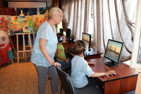 В досуговом центре Муниципального образования МО № 65 Приморского района Санкт-Петербурга на Туристской улице, дом 30, корпус 1 в период летних школьных каникул проходят занятия для детей по интерактивной программе на базе медиатеки виртуального филиала Русского музея.